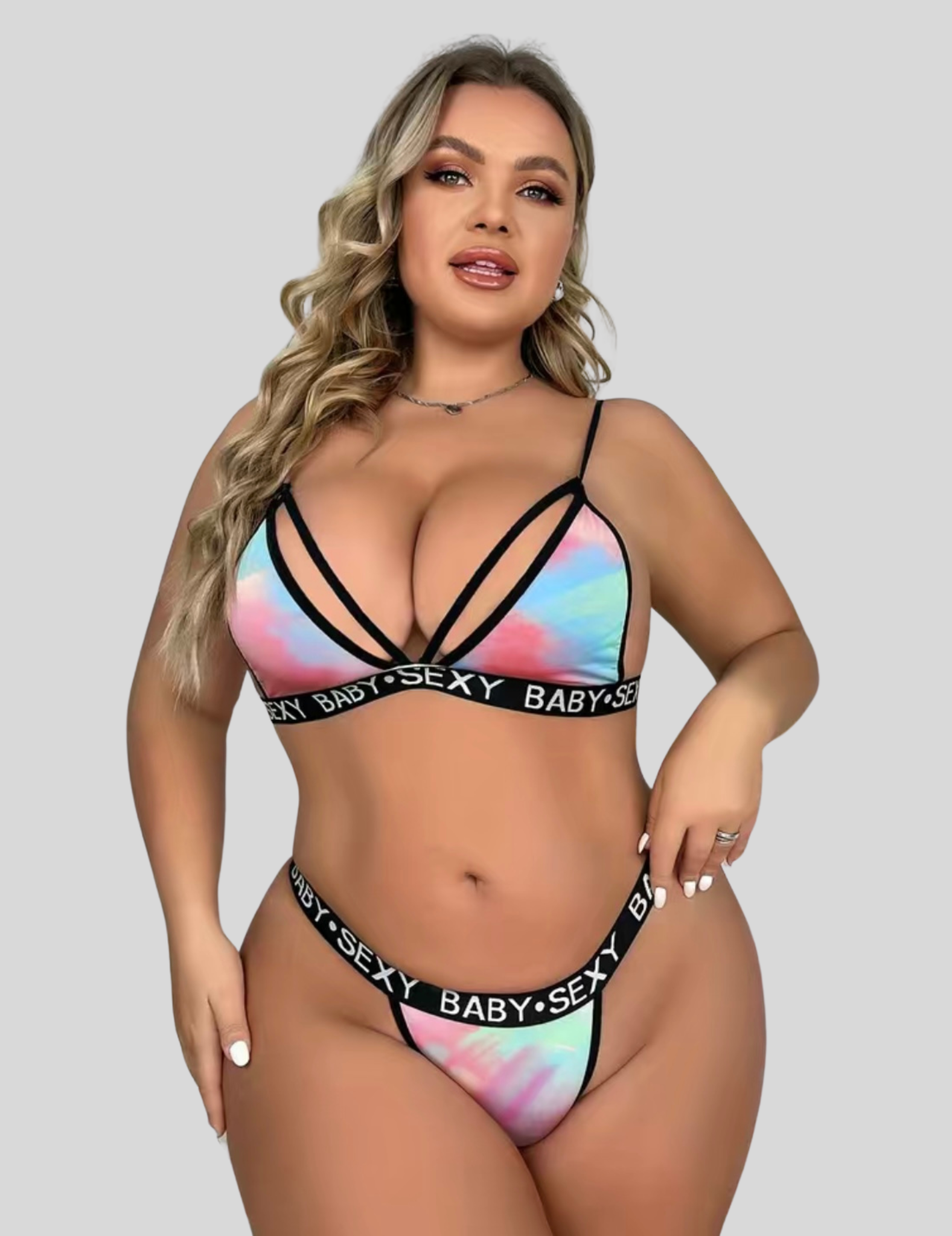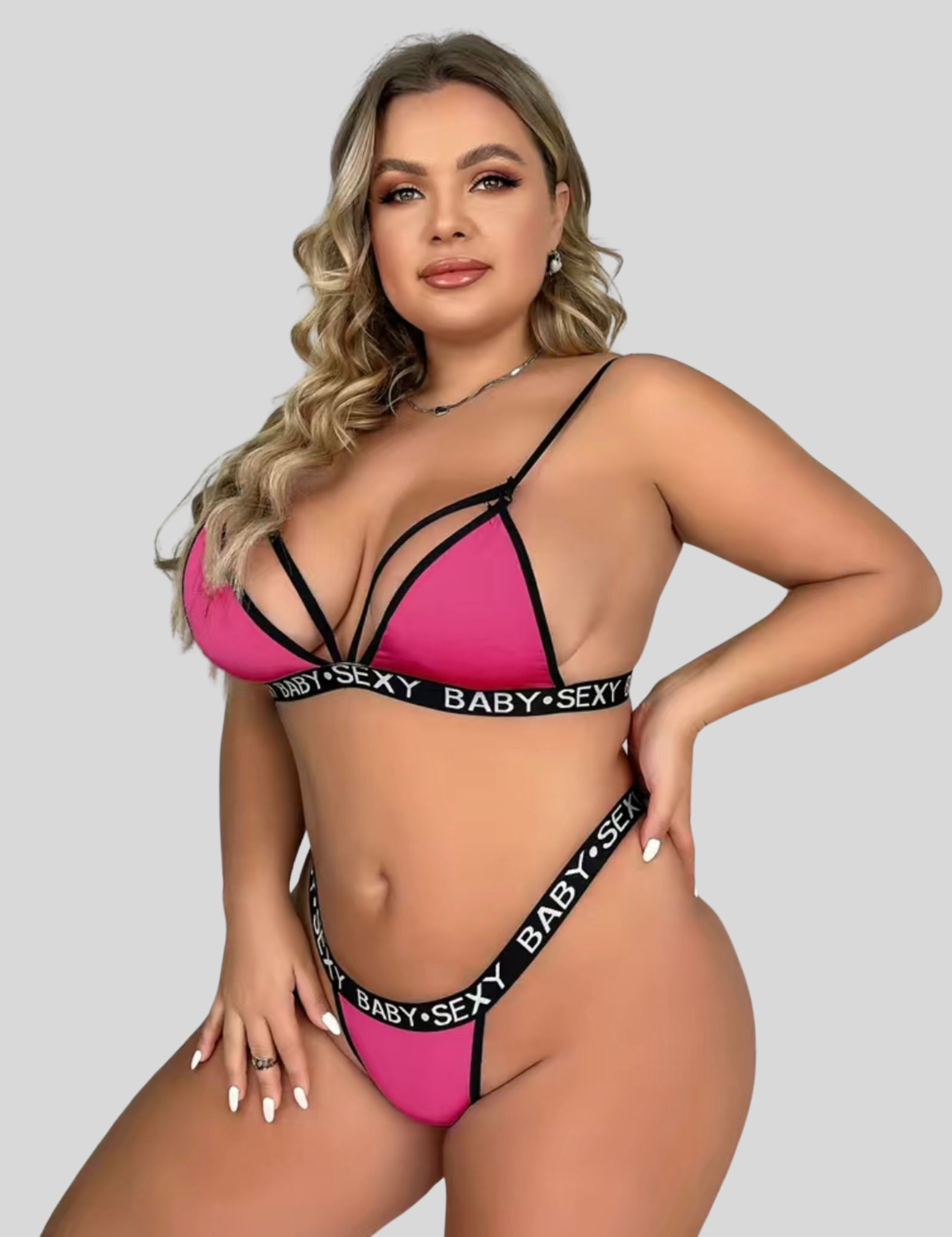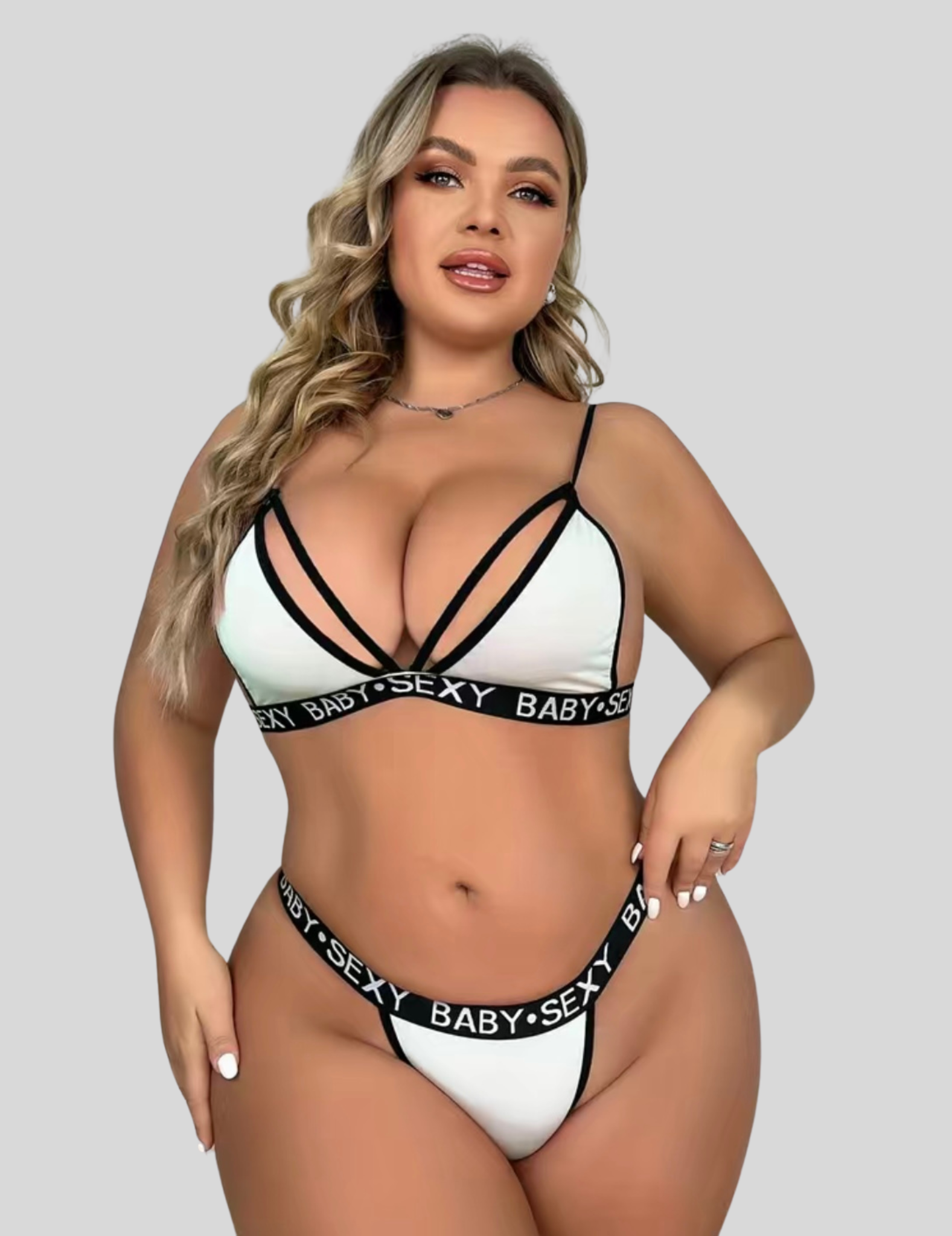 Introducing The Lola - a bra and panty set that's perfect for plus size beauties! Designed to provide comfort and support, this set features adjustable bra straps and a wireless design. The logo band adds a touch of style to this essential lingerie. Say hello to your new go-to set!