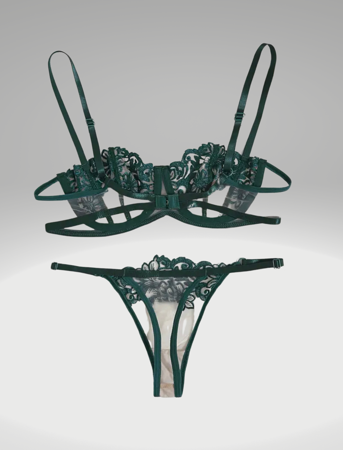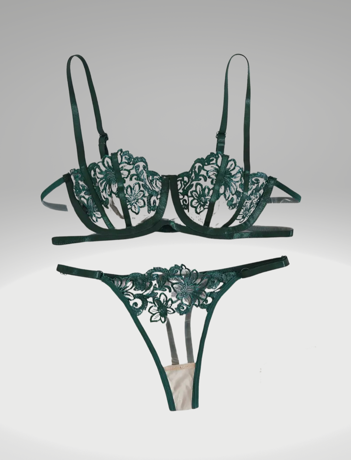 Introducing The Poison Ivy, a dangerously seductive lingerie set featuring delicate floral embroidery and a flirtatious unlined bra and mesh thong. Let this alluring set bring out your inner temptress and ignite some serious passion.